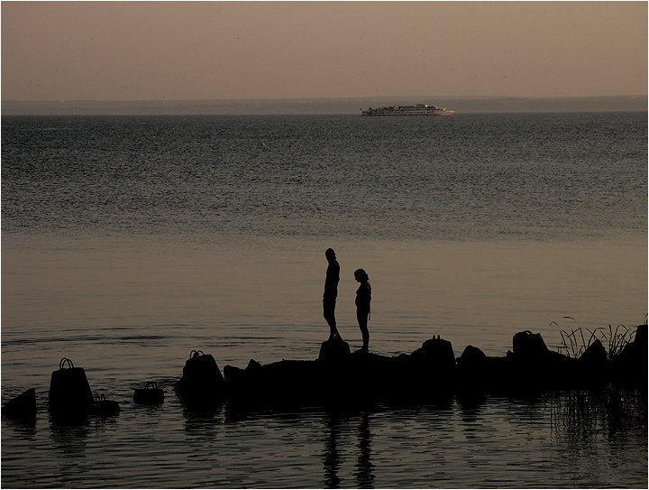 Нет, поджимать уже ничегоне надо. Они всё равно практически на одной линии. Во время съемок разместить персонажи в третях. В зависимости от настроения. Например люди в ПНУ, теплоход в ЛВУ, они его ждут. Люди в ЛНУ теплоход в ПВУ - прошел мимо.