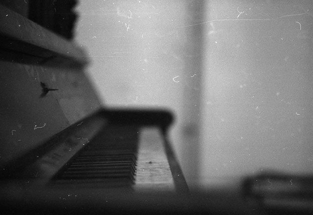 зенит е. какойто волшебный объектив с дыркой в 1.8... налез по байонету каким то удивительным образом. полтиник конечно... пианино в брошенном детском саду.