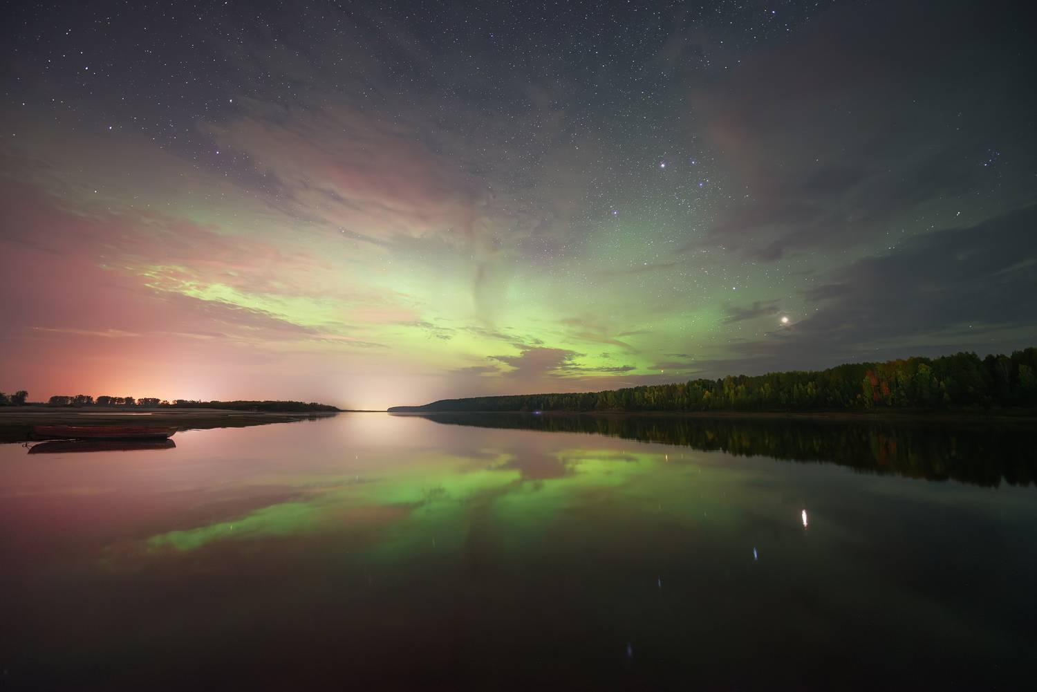 Сияние на берегу Северной Двины, Вологодская область, 13.09.2024