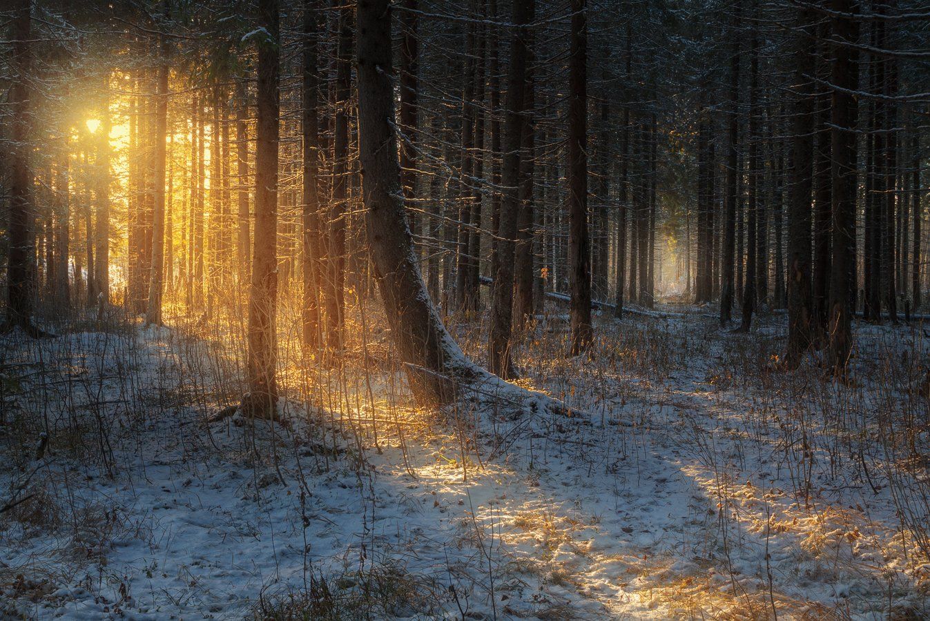 зима, закат, лес, парк, мороз, ель, иней, Смольский Евгений
