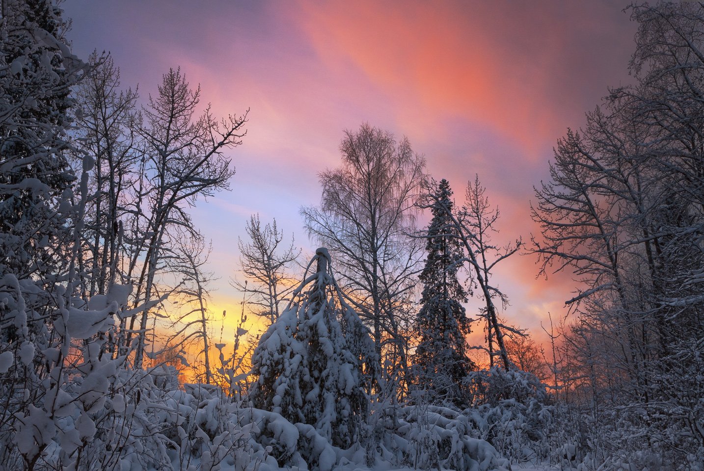 зима, закат, лес, парк, мороз, ель, снег, вечер, Смольский Евгений