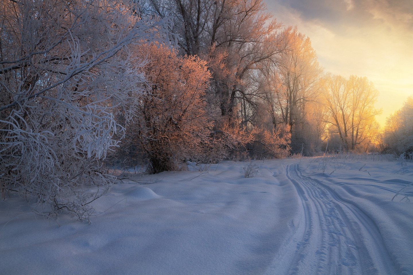 зима, закат, лес, парк, мороз, снег, вечер, след, тропа, Смольский Евгений
