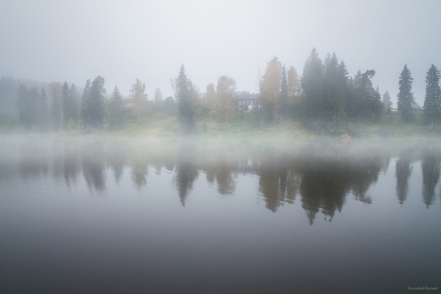 туман, утро, пруд, озеро, осень, пасмурно, Смольский Евгений