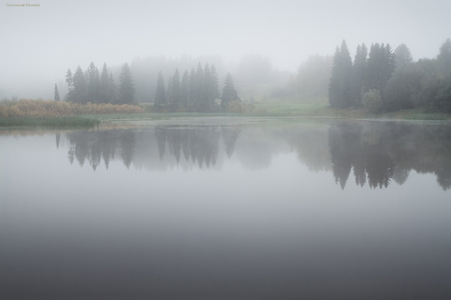 туман, утро, пруд, озеро, осень, пасмурно, Смольский Евгений