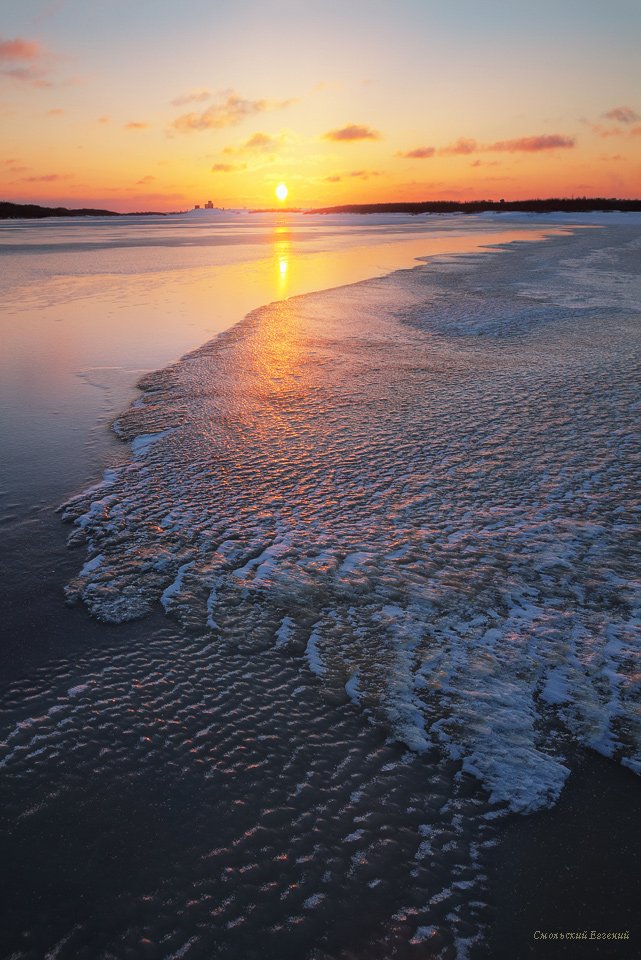 лед, снег, зима, закат, река, вечер, холод, Смольский Евгений