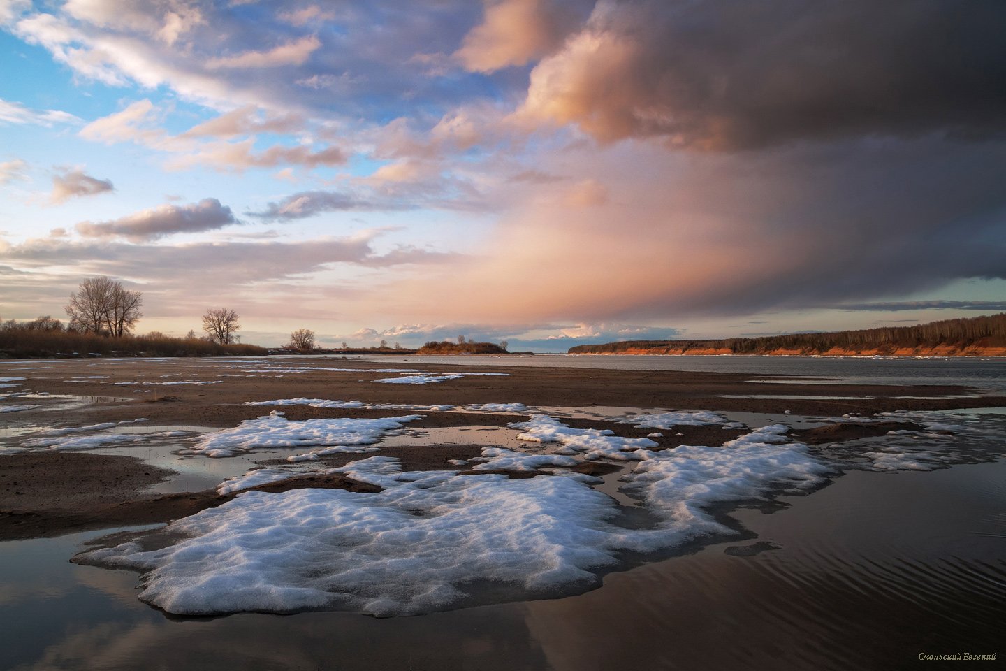 река, весна, закат, берег, северная двина, Смольский Евгений