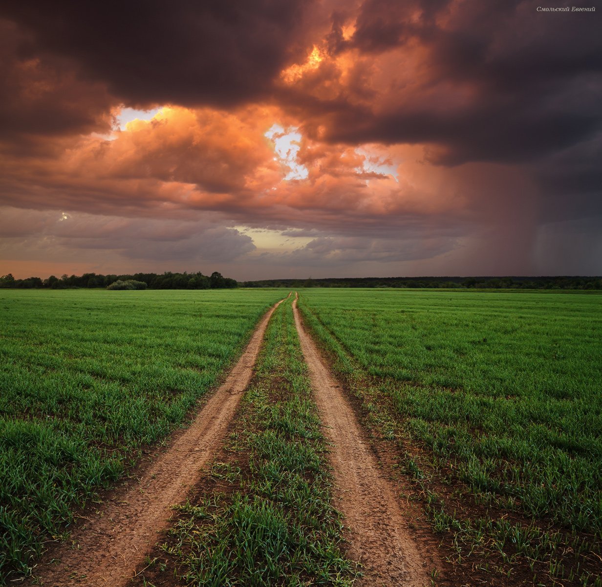 шторм, гроза, закат, май, поле, дорога., Смольский Евгений