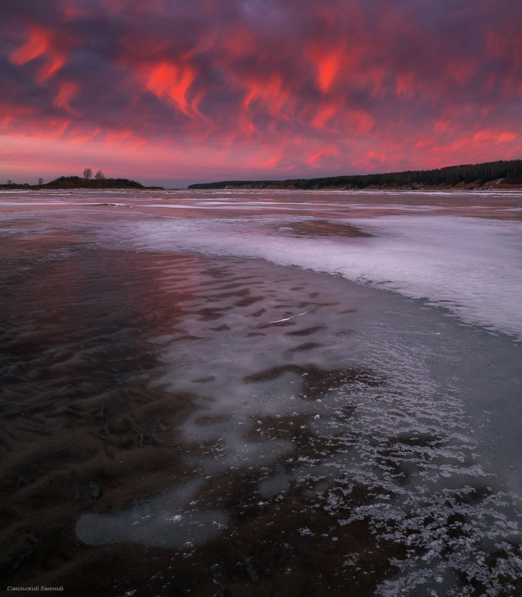 небо, закат, река, северная двина, осень, ноябрь, лед, Смольский Евгений