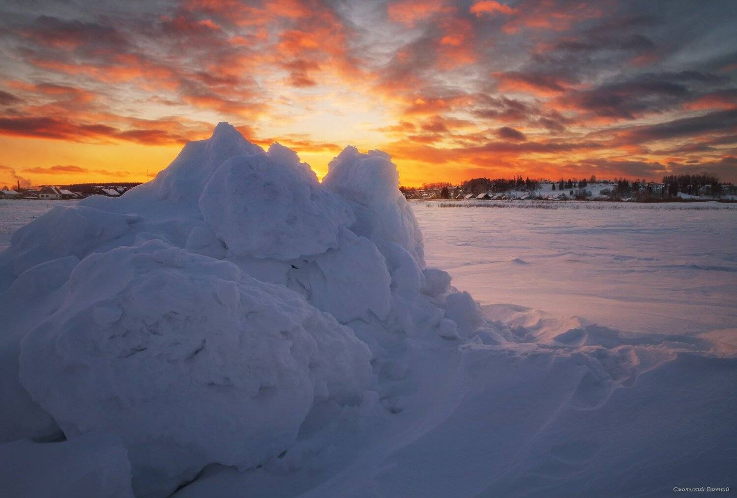 зимаснегсугробызакатполе.