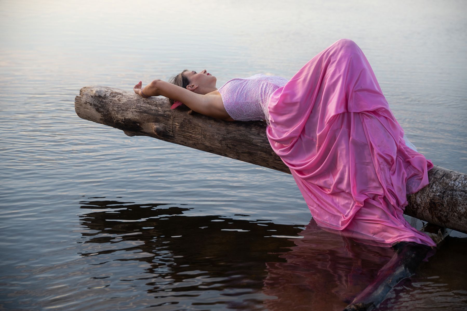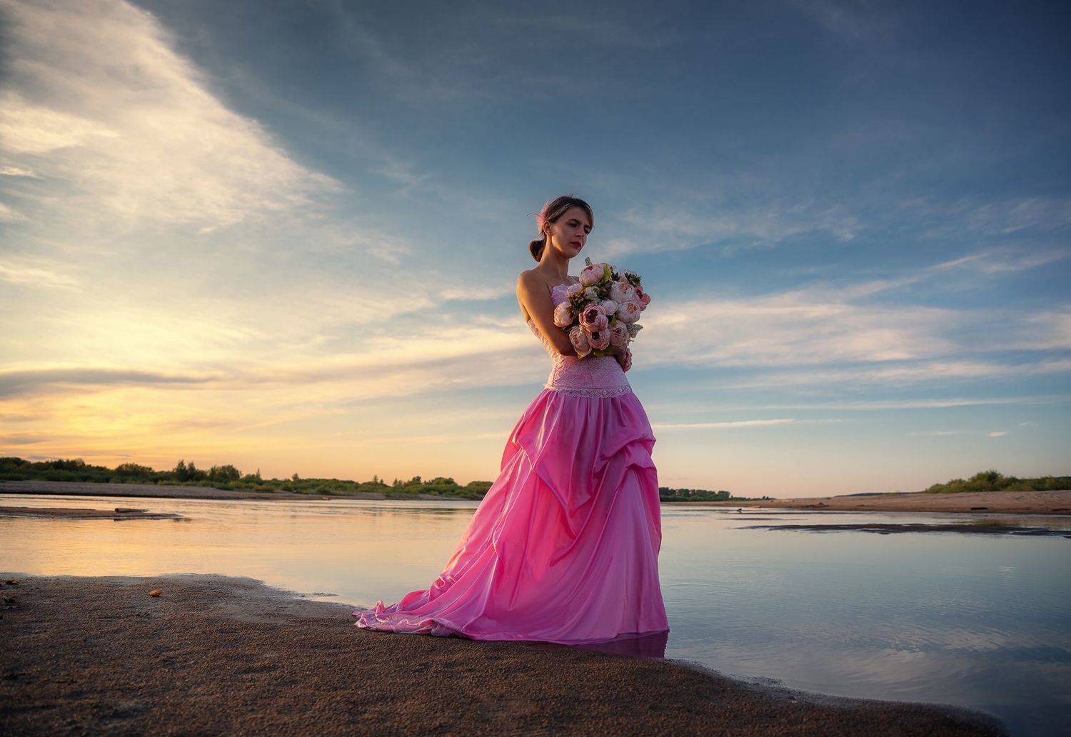 В розовом