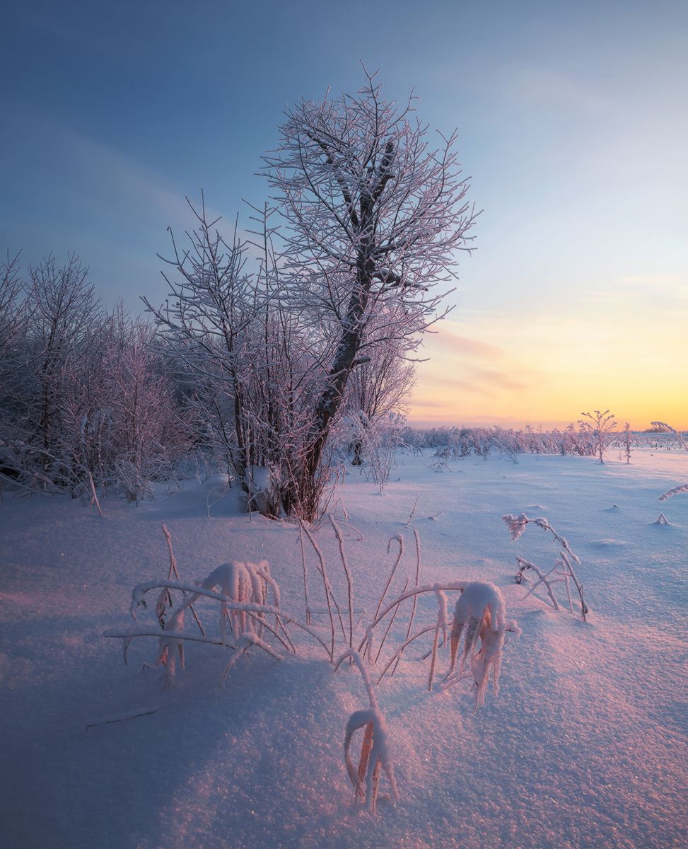 зима, закат, поле, мороз, снег, вологодская область, Смольский Евгений