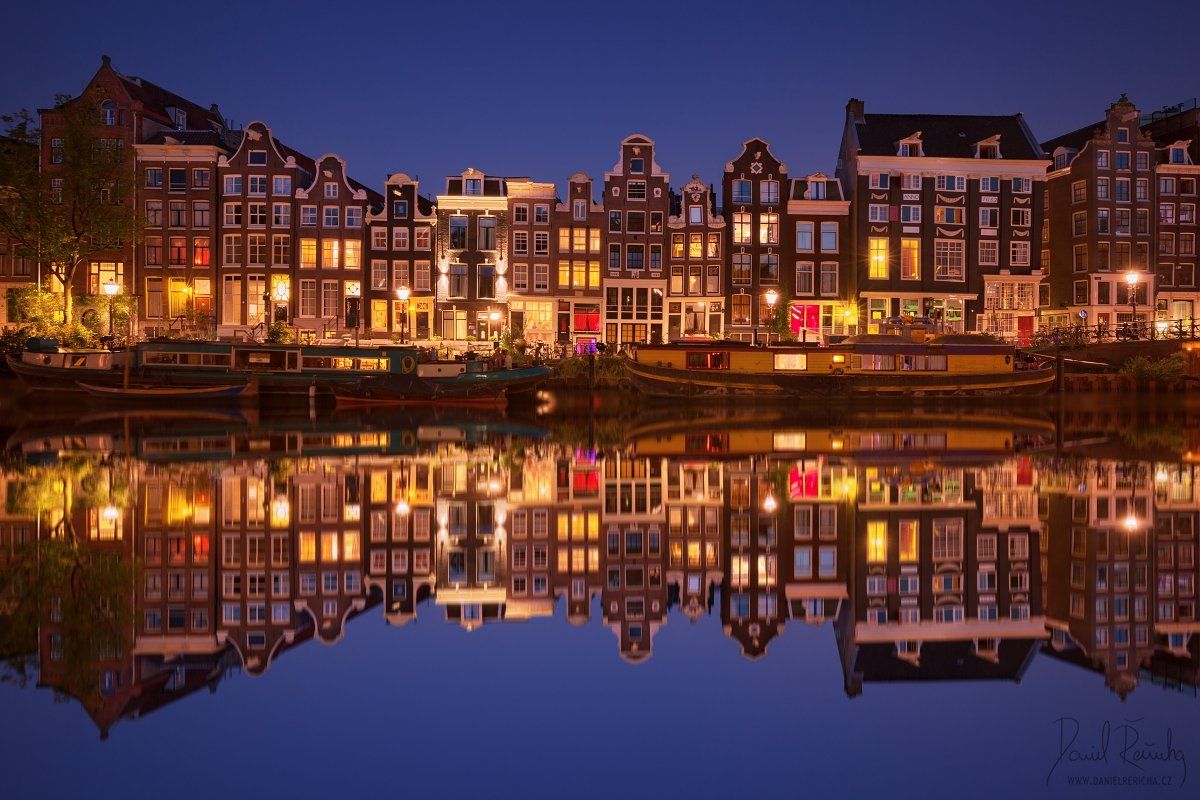 Netherlands, Nederland, Niederlande, Holland, North Holland, Holanda, Amsterdam, Amsterdam icon, Europe, city, beautiful city, night city, ships, boat, old houses, houses, reflection, reflection, blue, blue sky, sky, colorful, blue hour, sunset, canals, c, Daniel Rericha
