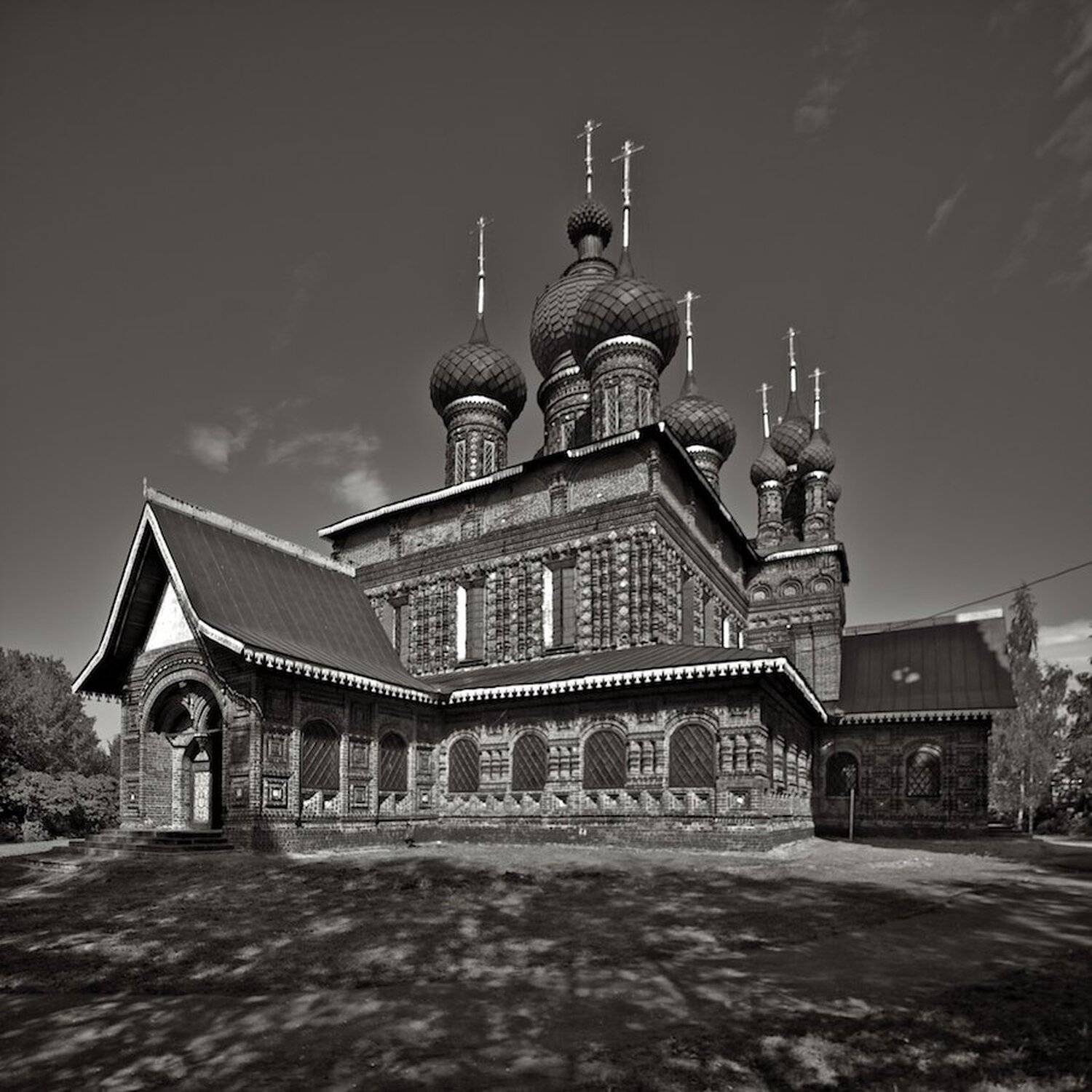 Один из значительнейших памятников ярославского зодчества. Построена в конце XVII века. По числу стенописных сюжетов храм - первый в христианском мире! Самый большой в Ярославле.Церковь Иоанна Предтечи представляет собой четырехстолпный пятиглавый храм с крытыми одноэтажными галереями с трех сторон, на которые ведут высокие щипцовые крыльца на столбах, с двумя симметричными приделами, завершающиеся малыми пятиглавиями. Таким образом, это единственный в древнерусской архитектуре пятнадцатиглавый собор.