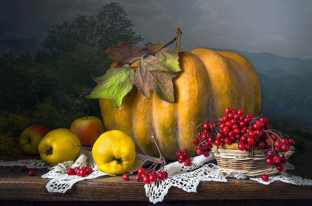 красивый натюрморт с тыквой,яблоки,айва,калина,художественное фото,искусство,творчество., Людмила Костюченко