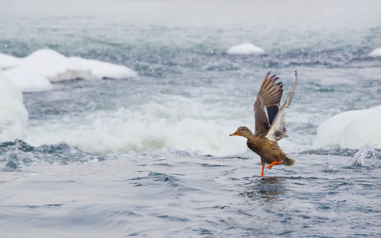 утка, кряква, река, упа, перекат, зима, Михаил Агеев