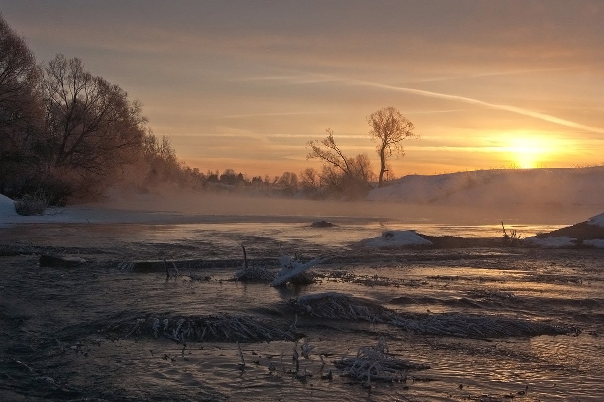весна, перекат, река, якшино, упа, разлив, рассвет, Михаил Агеев