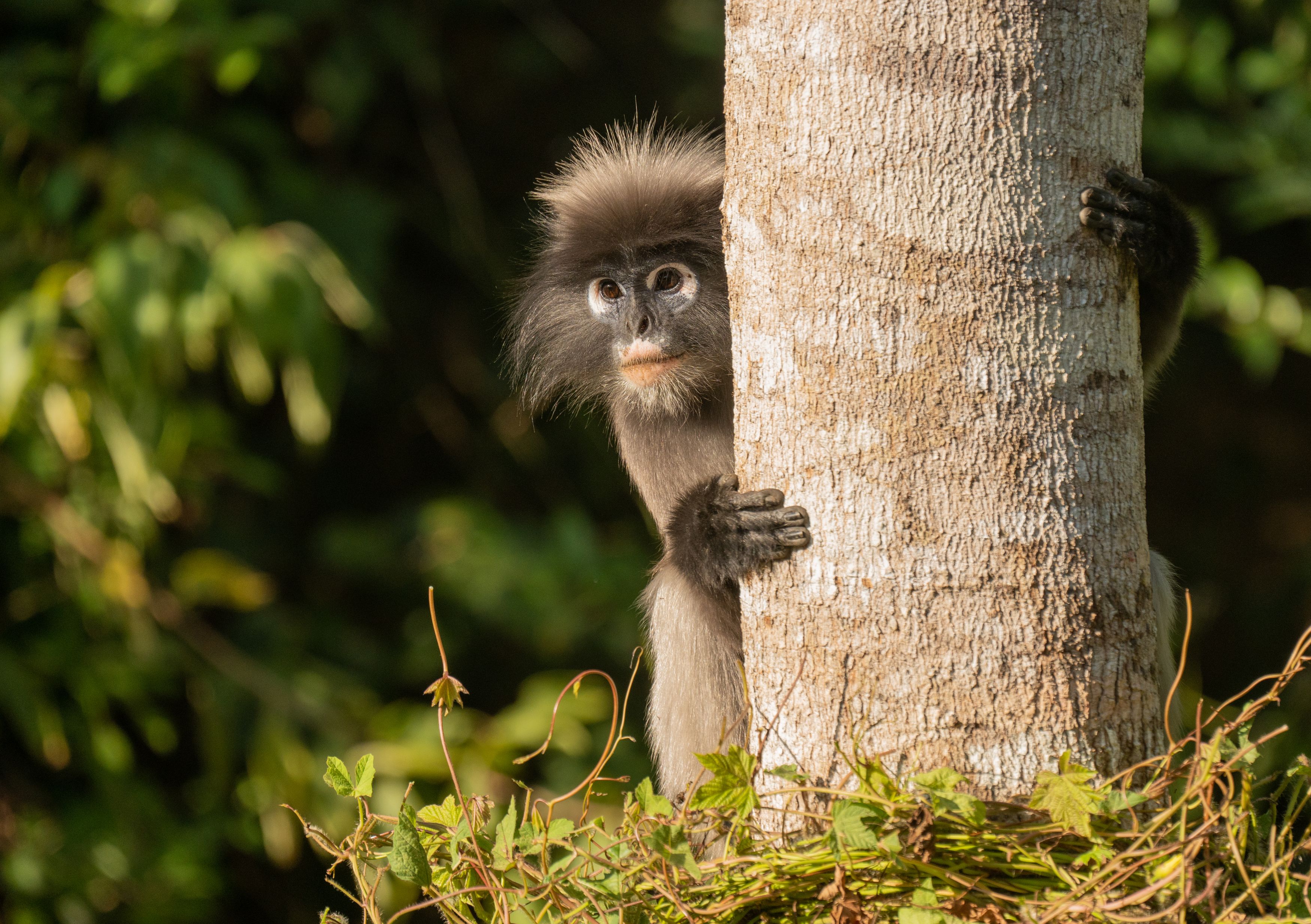 Свет мягко выделяет мордочку обезьяны, создавая приятный контраст с тёмной листвой — как Вы подобрали момент, чтобы она выглядела так любопытно? 🐒