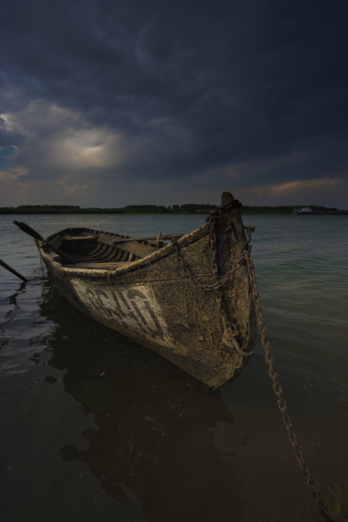 лодка, гроза, река, туча, облако, грозовая туча, Дунай, старая лодка, рыбачья лодка, , Даниел Балъков