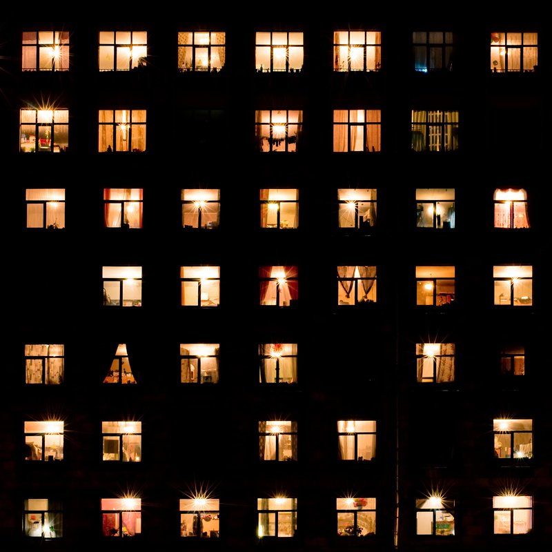 сама по себе идея подобной съемки, насколько я помню, принадлежит Андреасу Гурскому - он любит вот так здания снимать и делал это не один раз. Но у него был масштаб больше и мелкие истории действительно были видны, а тут только шторы.