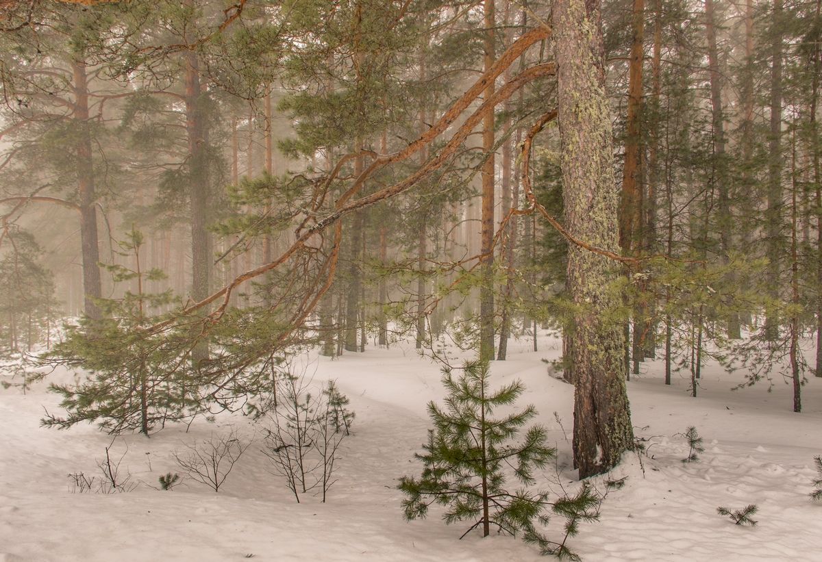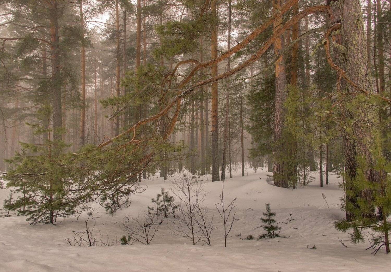Интересный контраст! Стройные стволы и сломленная ветка.