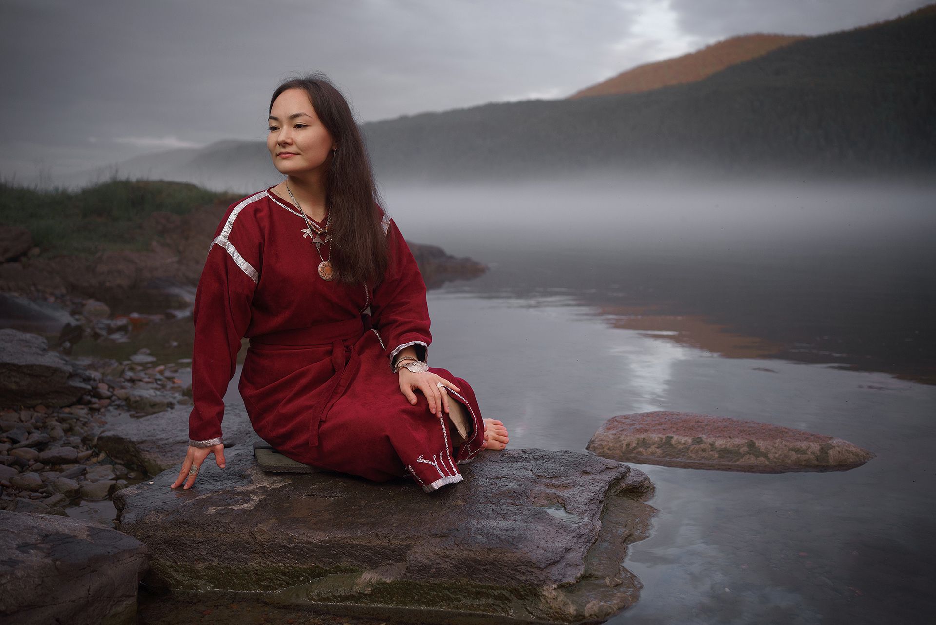 Хайвалам Вакувагир - из кетов. Увидев ее в сети, сразу же подумал, что нужно обязательно познакомиться и сделать портрет. Причем портрет обязательно на берегу Енисея, с которым тесно связана вся жизнь этого народа. Вообще, Хайвалам удивительная, - она активно пытается заниматься и сохранением кетского языка и изучением наследия и продвижением и сохранением культурных элементов.