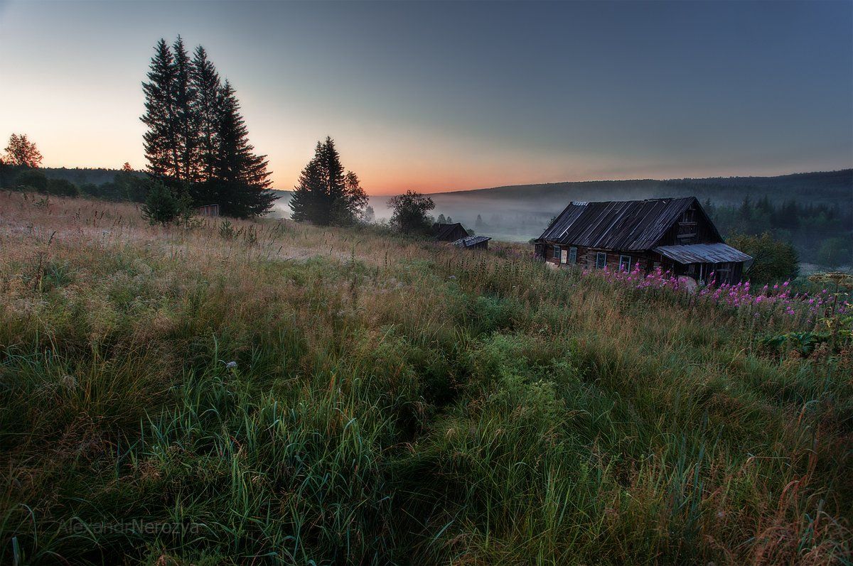 дом, красноярский край, лес, лето, рассвет, роса, россия, тайга, туман, утро, Александр 'Horimono' Нерозя