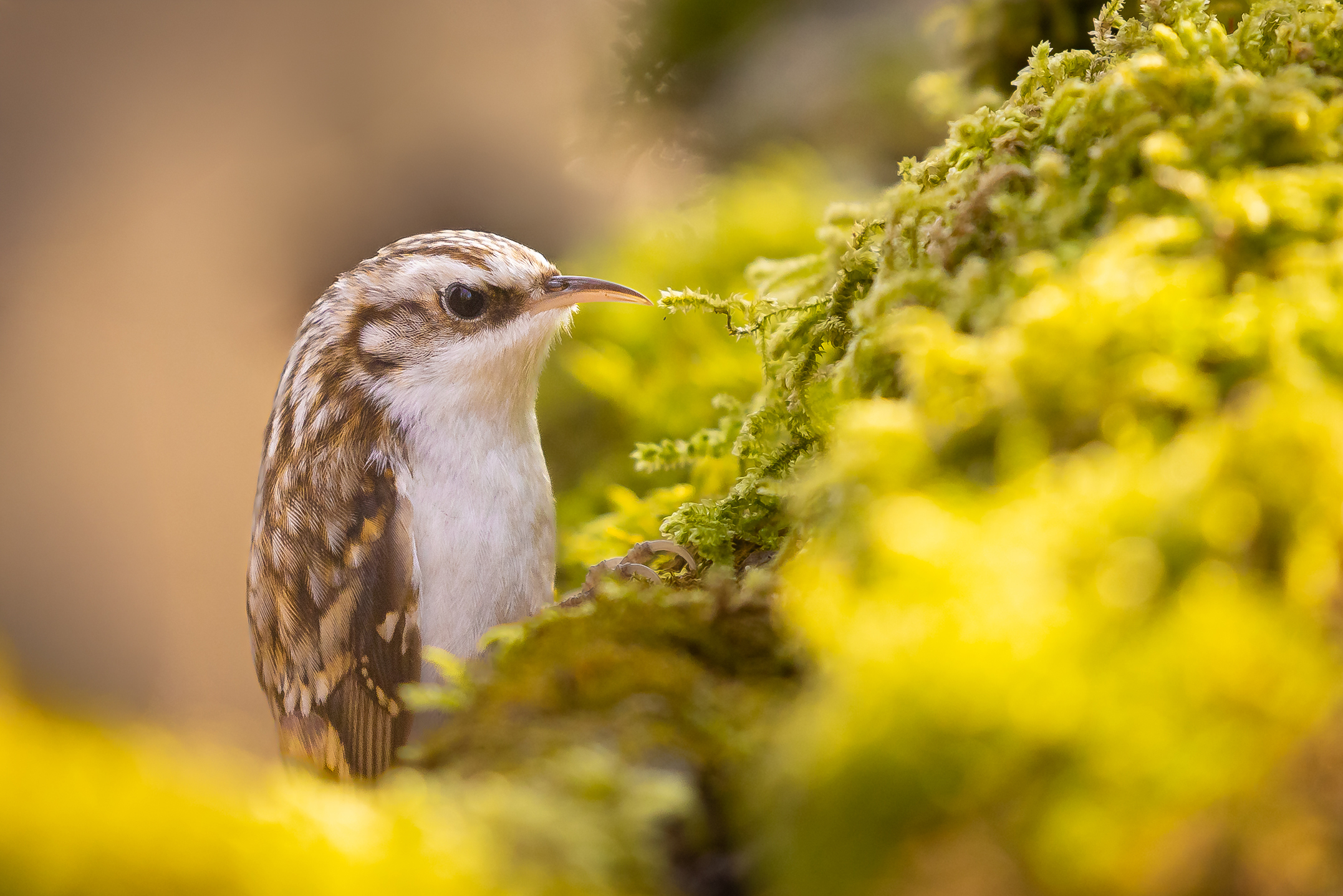 Small bird, sharp eye, mossy green frame. Clean focus. Natural light. 🐦🌿