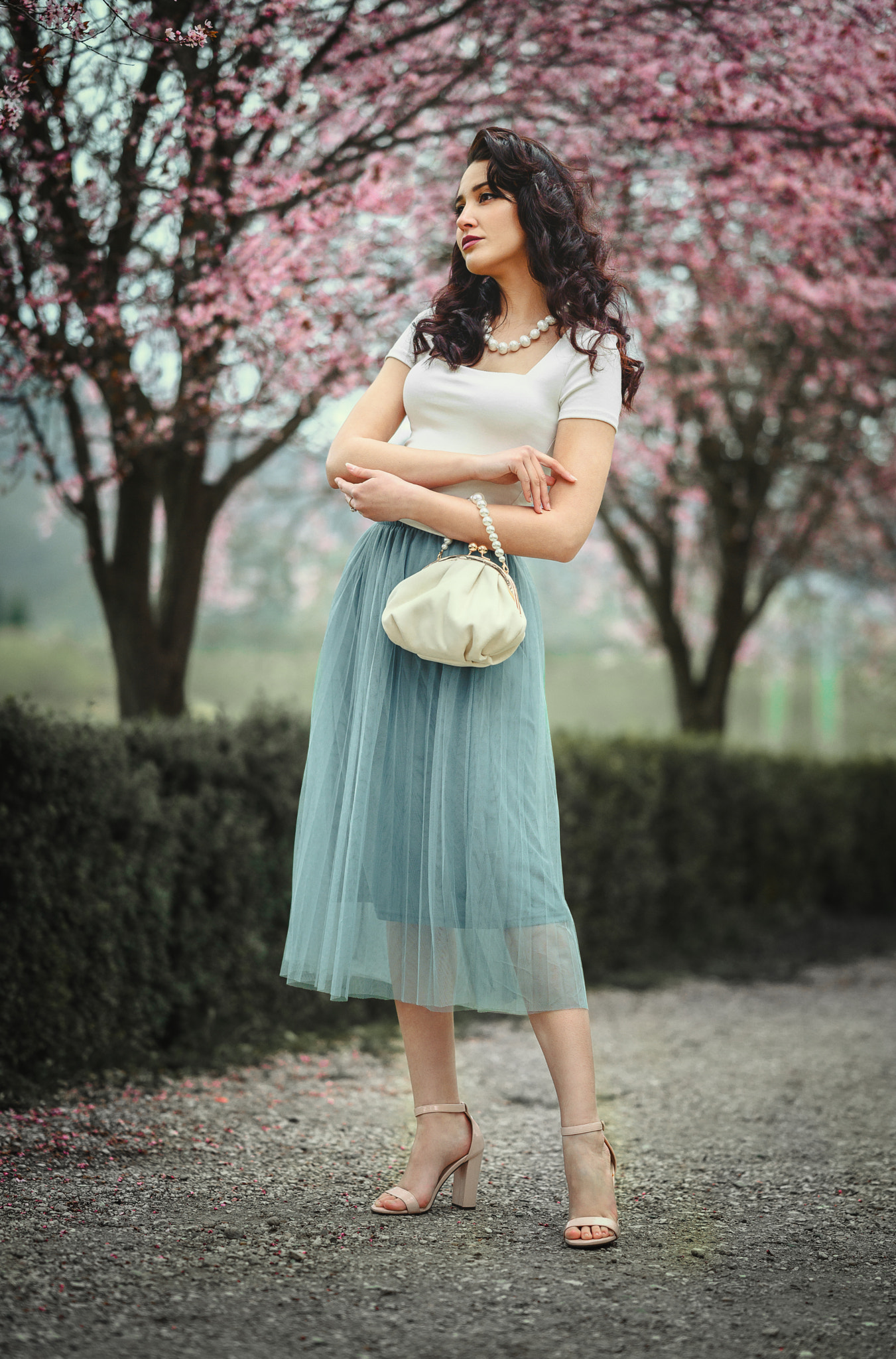 Adrian, you’ve got a nice vintage feel here—the pastel tones and cherry blossoms work well together. The model’s pose feels natural, which helps keep things from looking too staged.