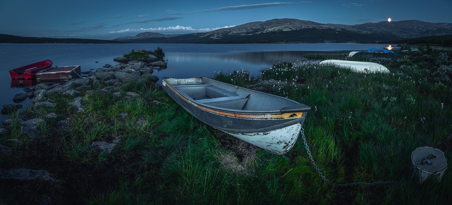 norway,norwegian,scandinavia,scandinavian,dovre,dovrefjell,landscape,nature,boat,panorama,panoramic,night,moon, Adrian Szatewicz