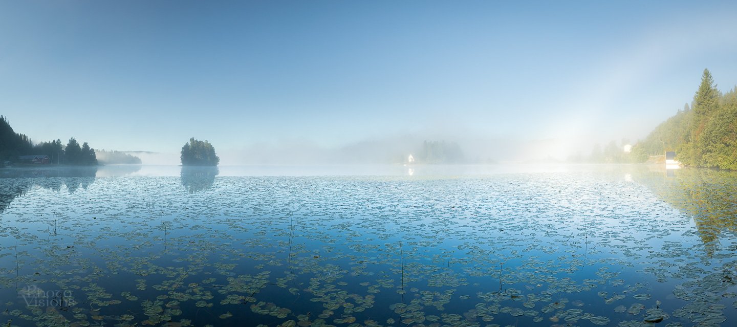 norway,panorama,panoramic,lakeside,lake,rainbow,morning,fog,, Adrian Szatewicz