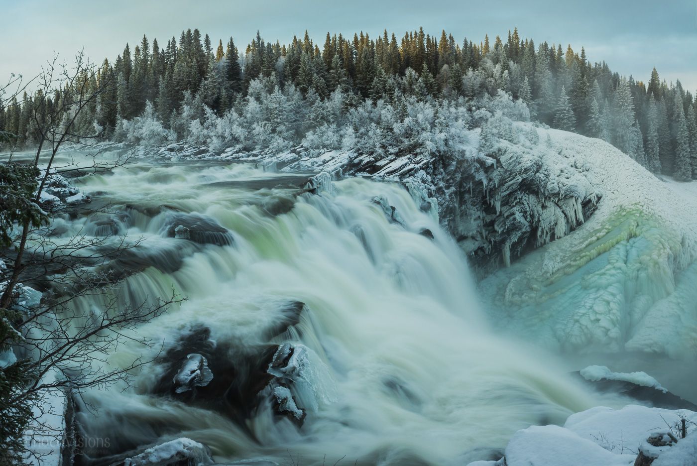 The biggest, not the highest, but the most powerful waterfall of Sweden - Tännforsen. Winter wonderland of Scandinavia.