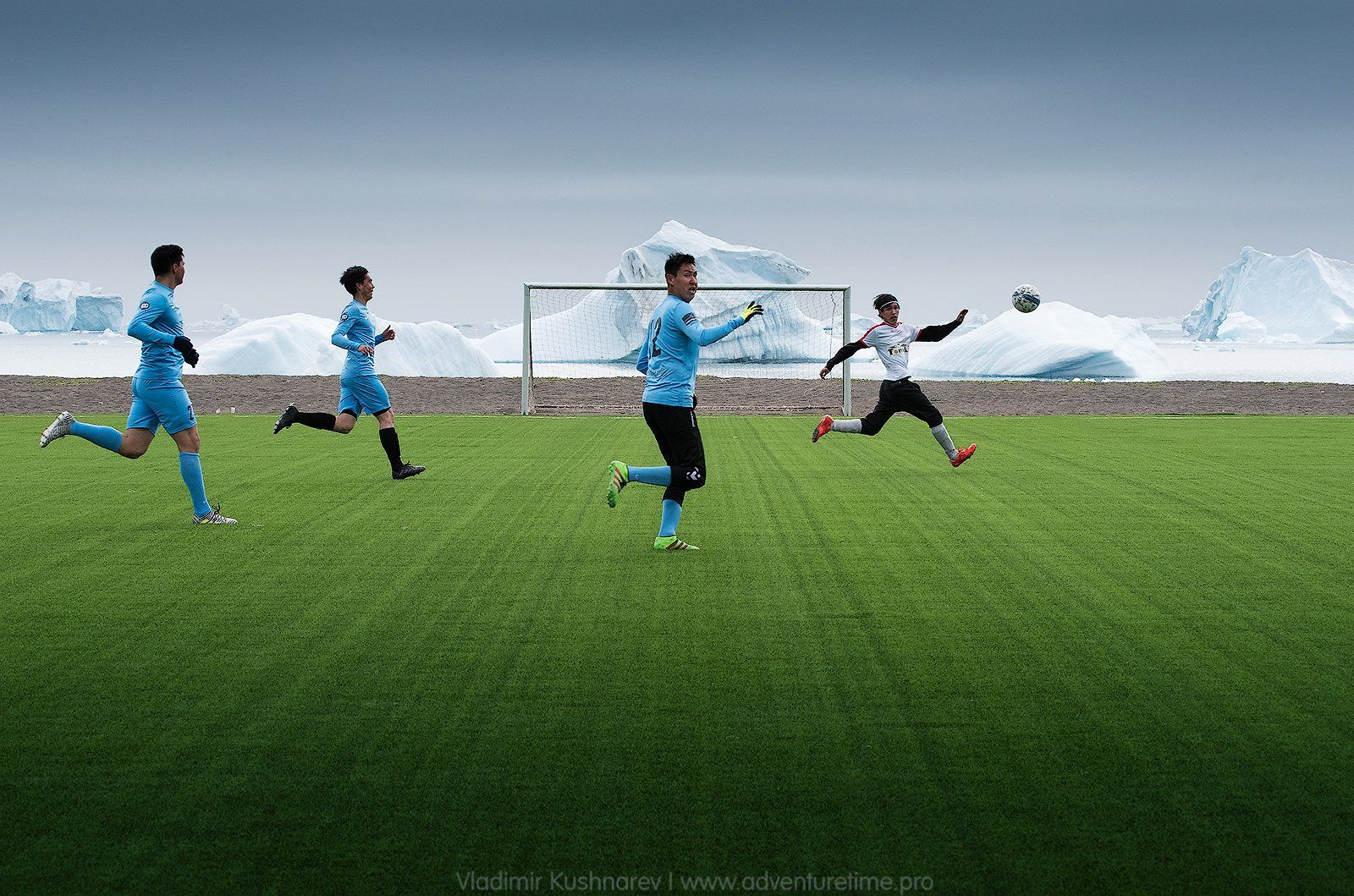 Qeqertarsuaq - маленькая рыбацкая деревушка инуитов в Южной части острова Disco. Матч местных футбольных команд произвел на нас неизгладимое впечатление. Как и окружающий пейзаж.