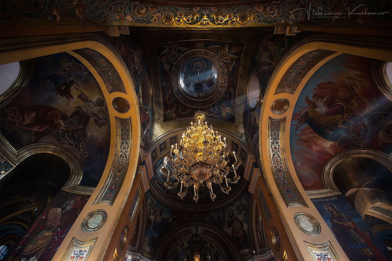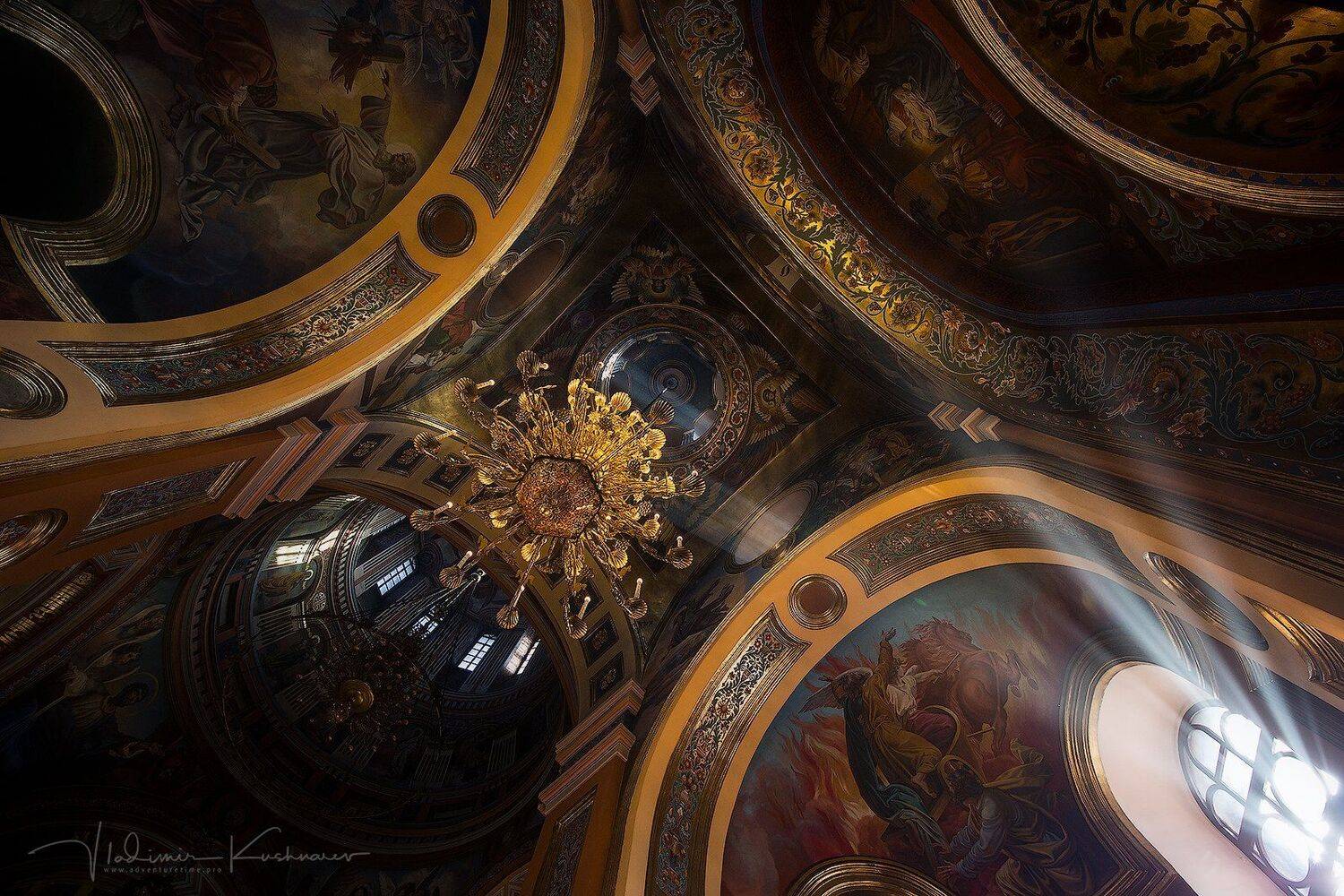 Храм Иконы Казанской Божьей Матери в Иркутске. Заходим. Тихо, светло, прихожане... Какое же было мое удивление, когда я задрал голову вверх. Вау. Пришлось лечь на пол и снимать с рук. Конечно, я спросил разрешения у служителя на это. Разрешение (ну или благословение) было получено вместе с пожеланием не застудить спину. Прихожане вот толко странно посматривали на меня. Но потом привыкли и совсем перестали обращать внимание.