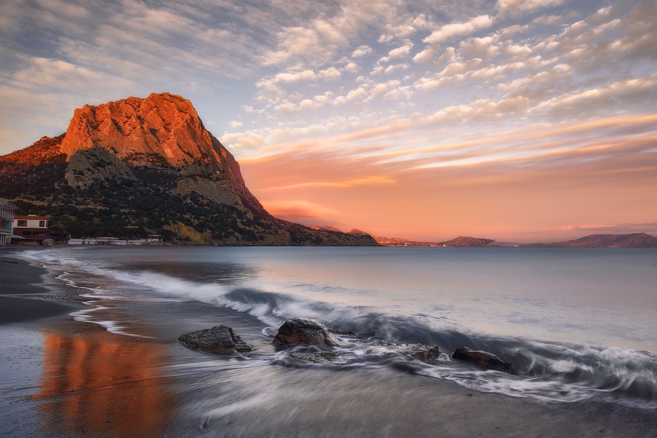 Погода в Новом Свете была совершенно непредсказуема. И пошли в один прекрасный день гулять на набережную, подумав, что ничего нам не светит в прямом смысле... И ошиблись, ой как ошиблись. На следующий день я попытался исправить ошибку, но это уже не то, что нужно. Хотя, могло быть и хуже.