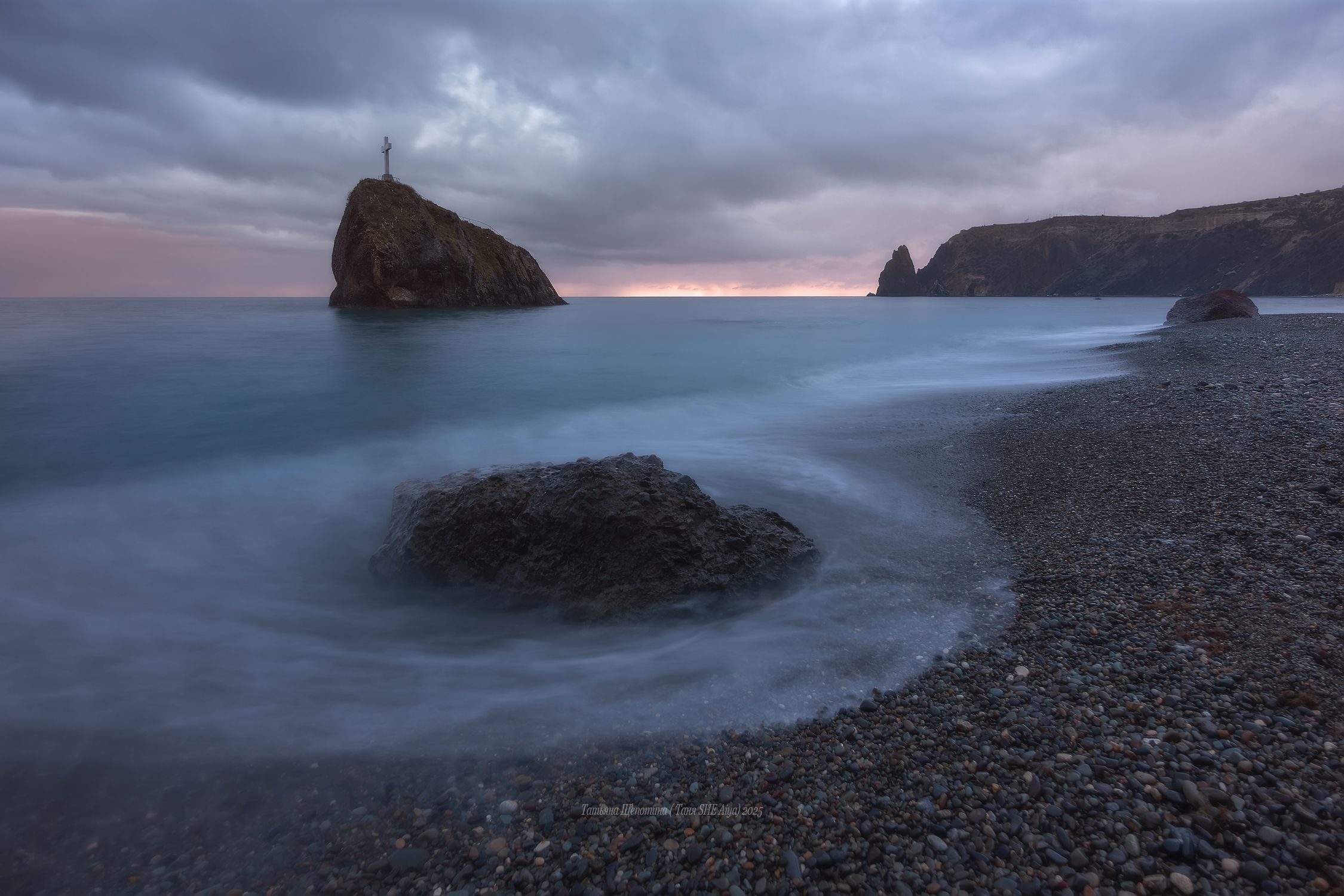 Все убегали с Фиолента, а мы на пляж! А дождь всё больше. Спрятались в небольшой пещерке. Всё вокруг серое. С небес водааааа!!!! Поели, Чаю попили! А дождь идёт((( . Уже и не надеялись, что он закончится. Но!!!!!!!!!!!!! Тучи разошлись! А вода после дождика стала невероятно-красивого цвета!!!