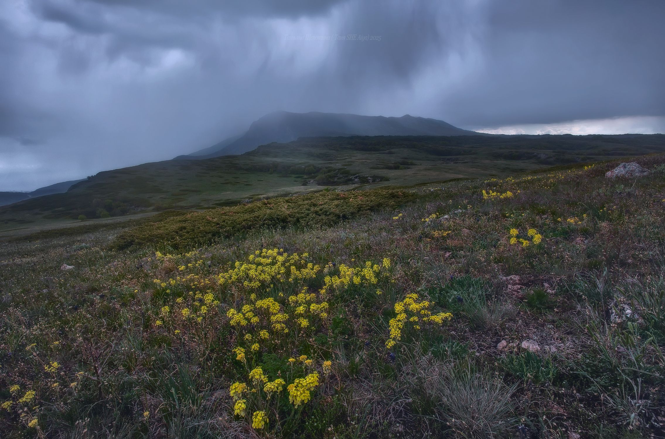 Майский Чатыр-Даг встретил нас не очень приветливо. Над Крымом светило ласковое солнышко. Но здесь было всё по-другому! Град, дождь, снова град! Порывы ветра. И мы мокрые и замёрзшие с сожалением ретировались. И лишь только наша небольшая компания покинула эти величественные горы - вокруг водрузился солнечный покой...