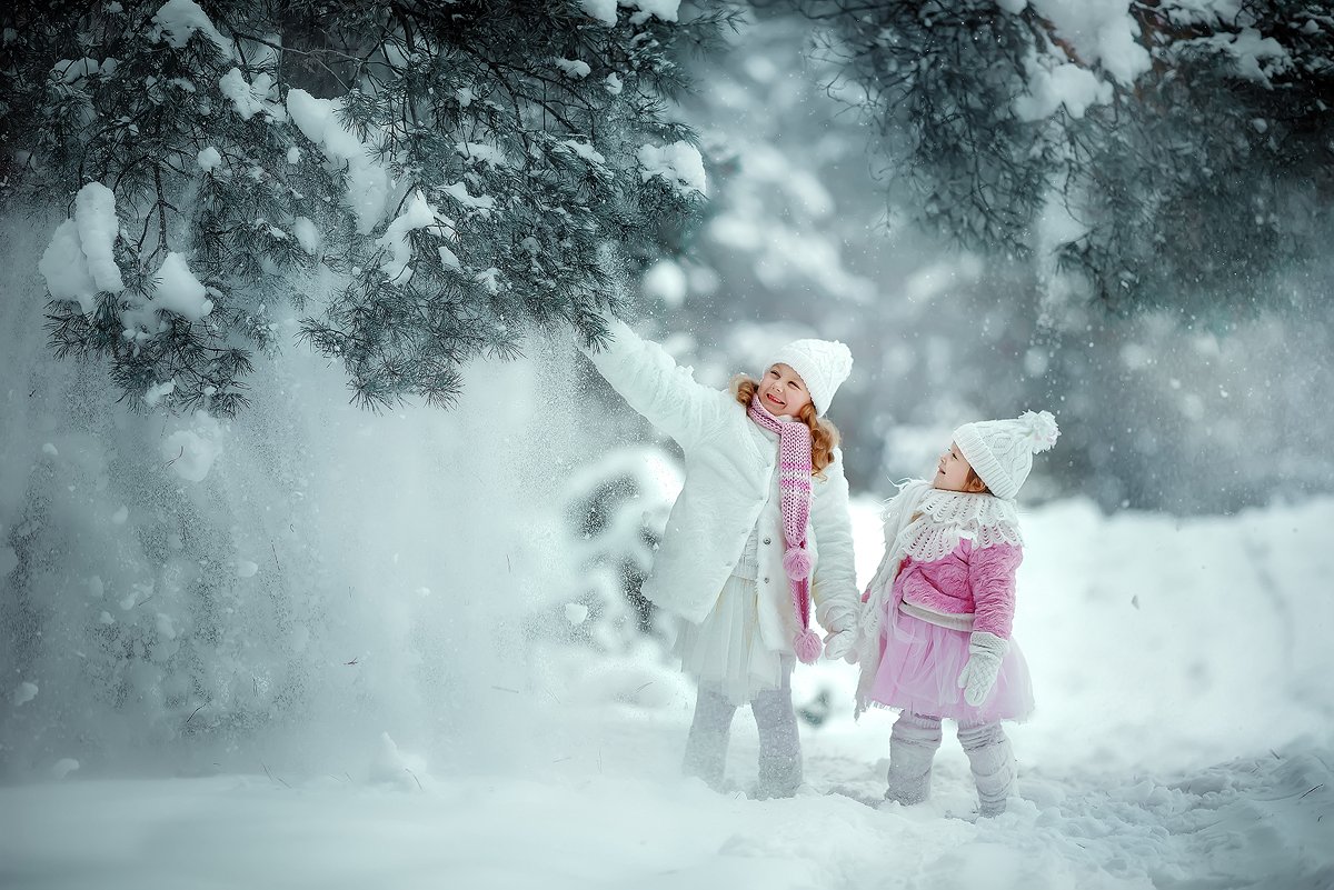 дети, зима, лес, снег, веселье, Ольга Акиншина