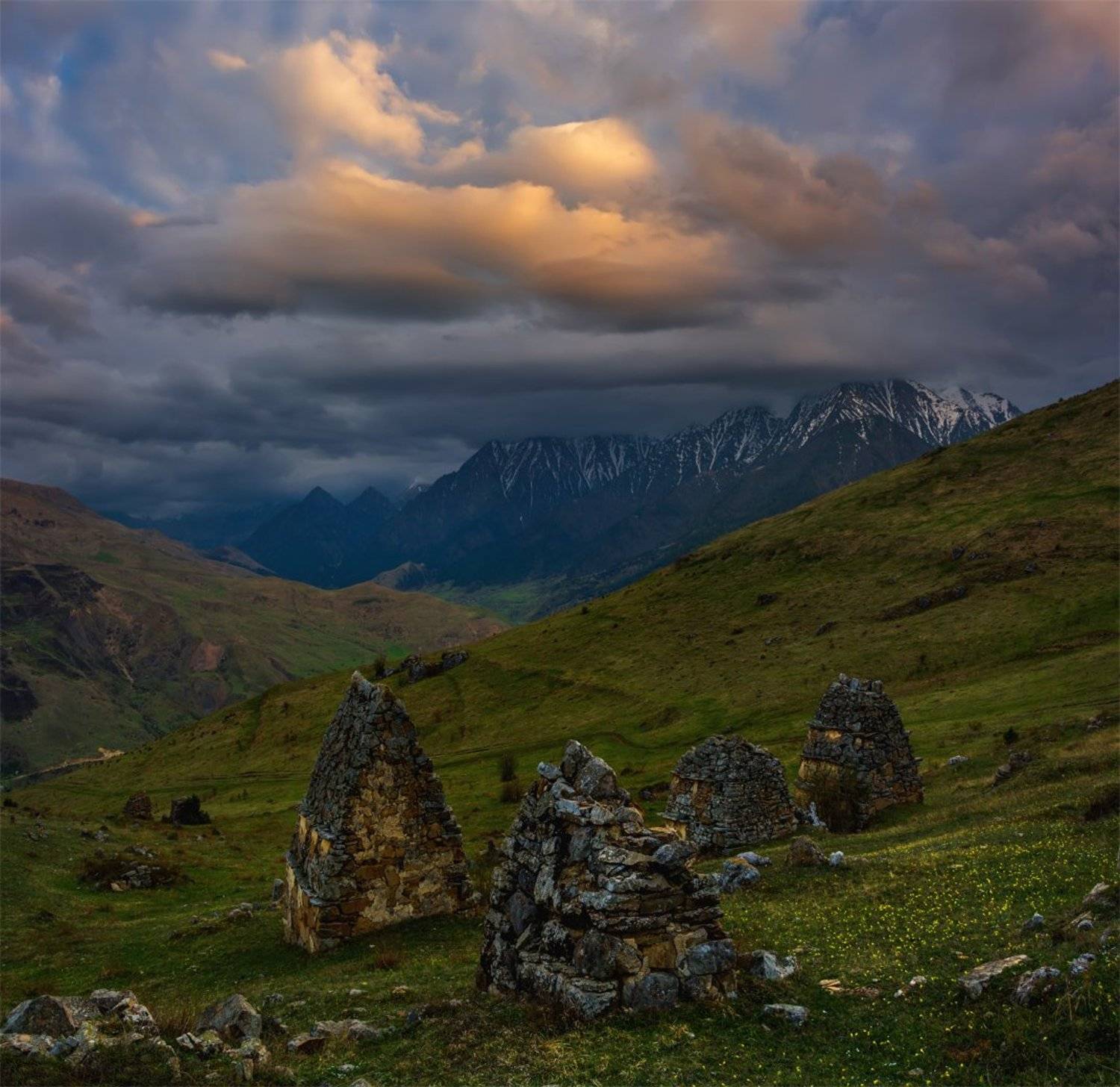 природапейзажкавказгорывеснавечерпанорамазакатсолнценебооблакасвет