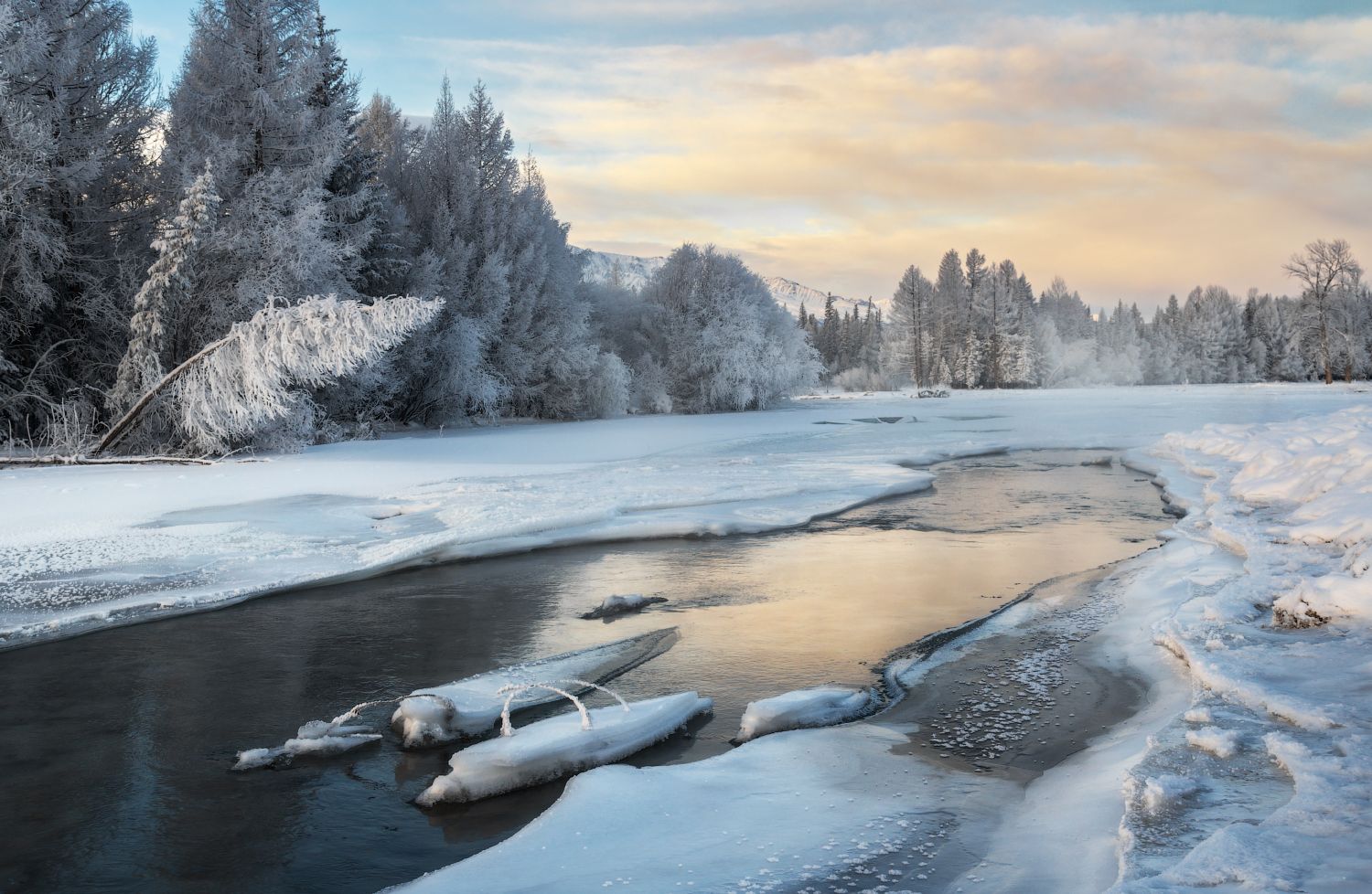 Последние деньки, когда ещё можно было наблюдать открытую воду Чуи в Курайской степи. К началу декабря реку здесь полностью покроет ледяной панцирь.