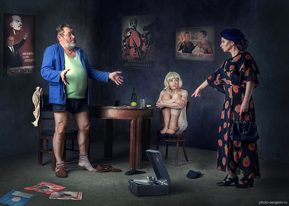 сцена,апогей,кульминация,треугольник,муж,жена,любовница,измена,ирония,юмор,стилизация, Александр Сергеев