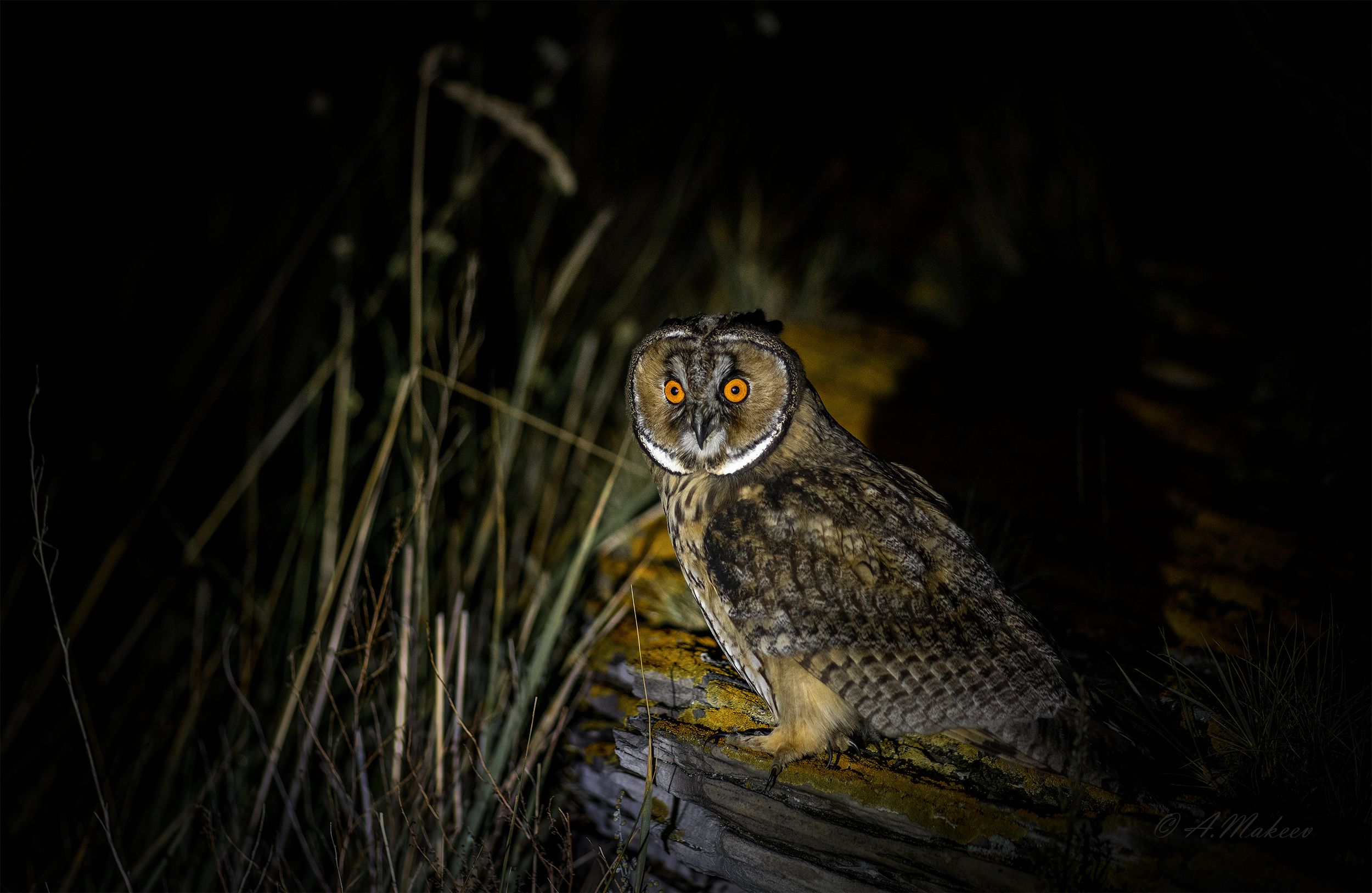 Снимал ночью, используя два фонаря.