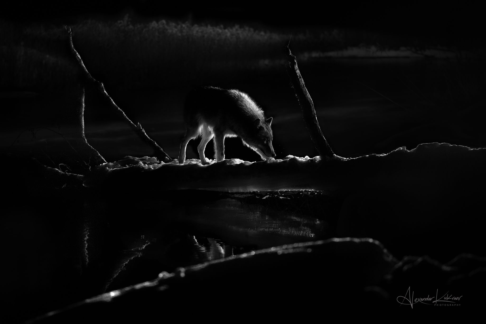 волк,животные,зима,река,ночь, Александр Кукринов