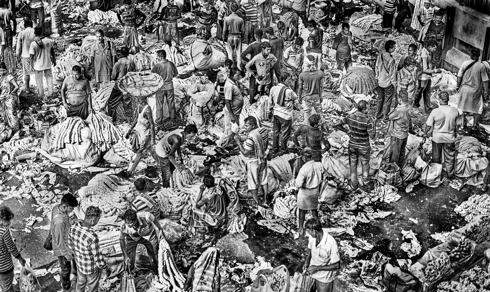Рынок цветов в Калькутте. Под мостом.