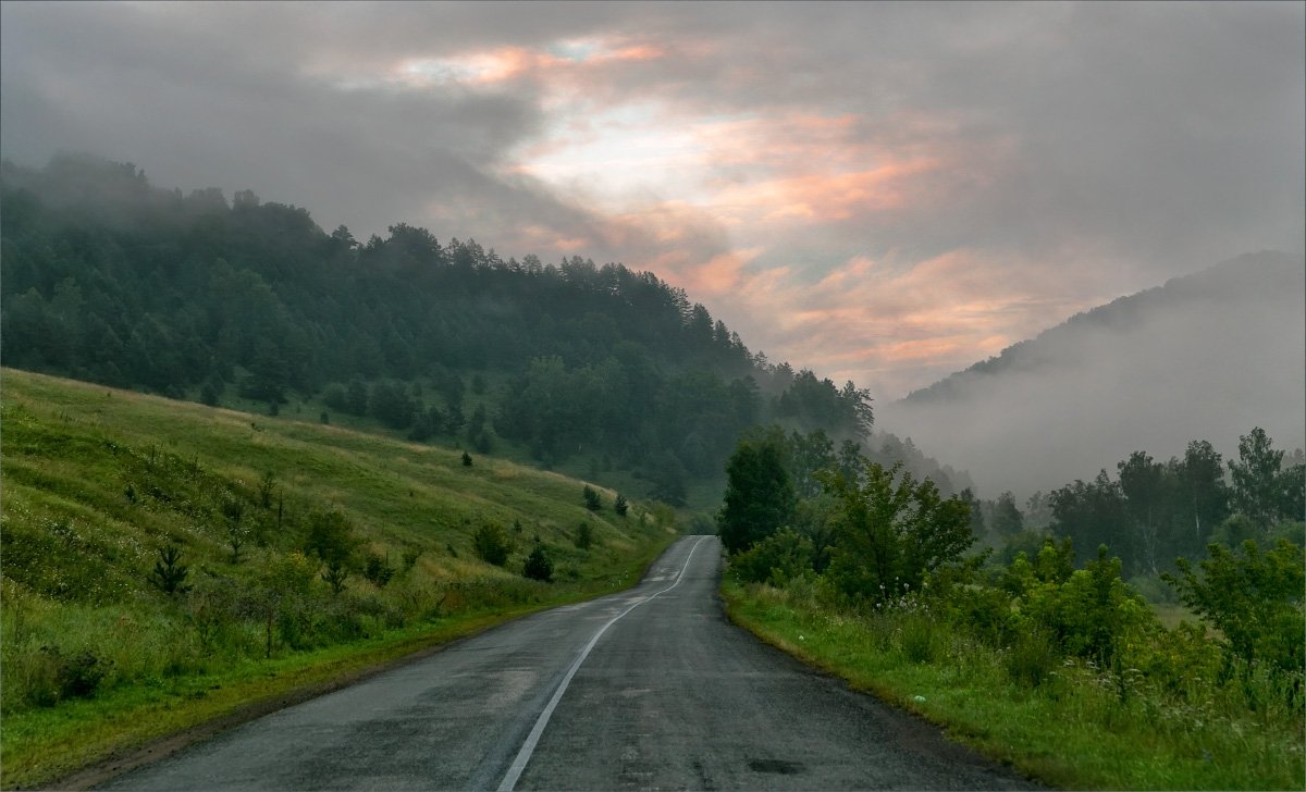 пейзаж туман дорога, Александр Гусаков