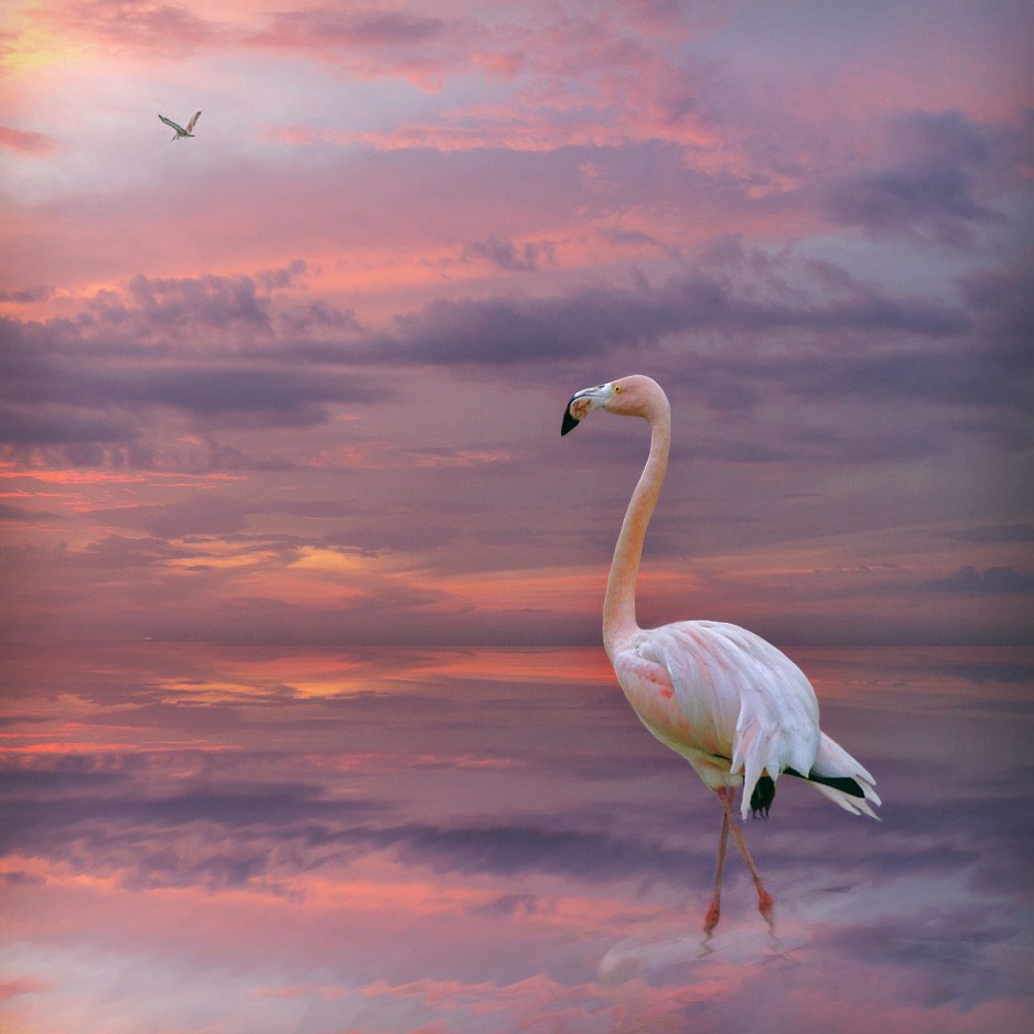 розовый фламинго в лучах заката, Александр Гусаков
