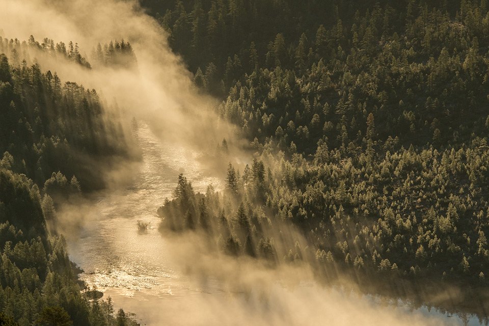 колыма, озеро джека лондона, река кюель-сиен, магаданская область, россия, река, утро, рассвет, лиственницы, туман, Алексей Харитонов