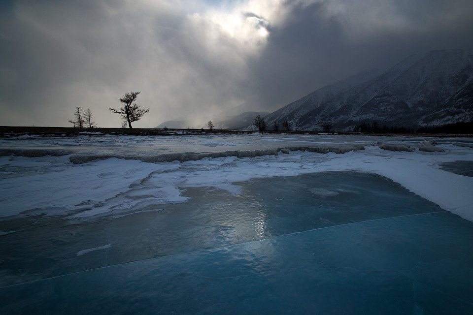 Поверь, выровнять "по горизонту" тут было бы проще всего, но тогда все выглядело ровно так - наклонный лед и "кривой горизонт"