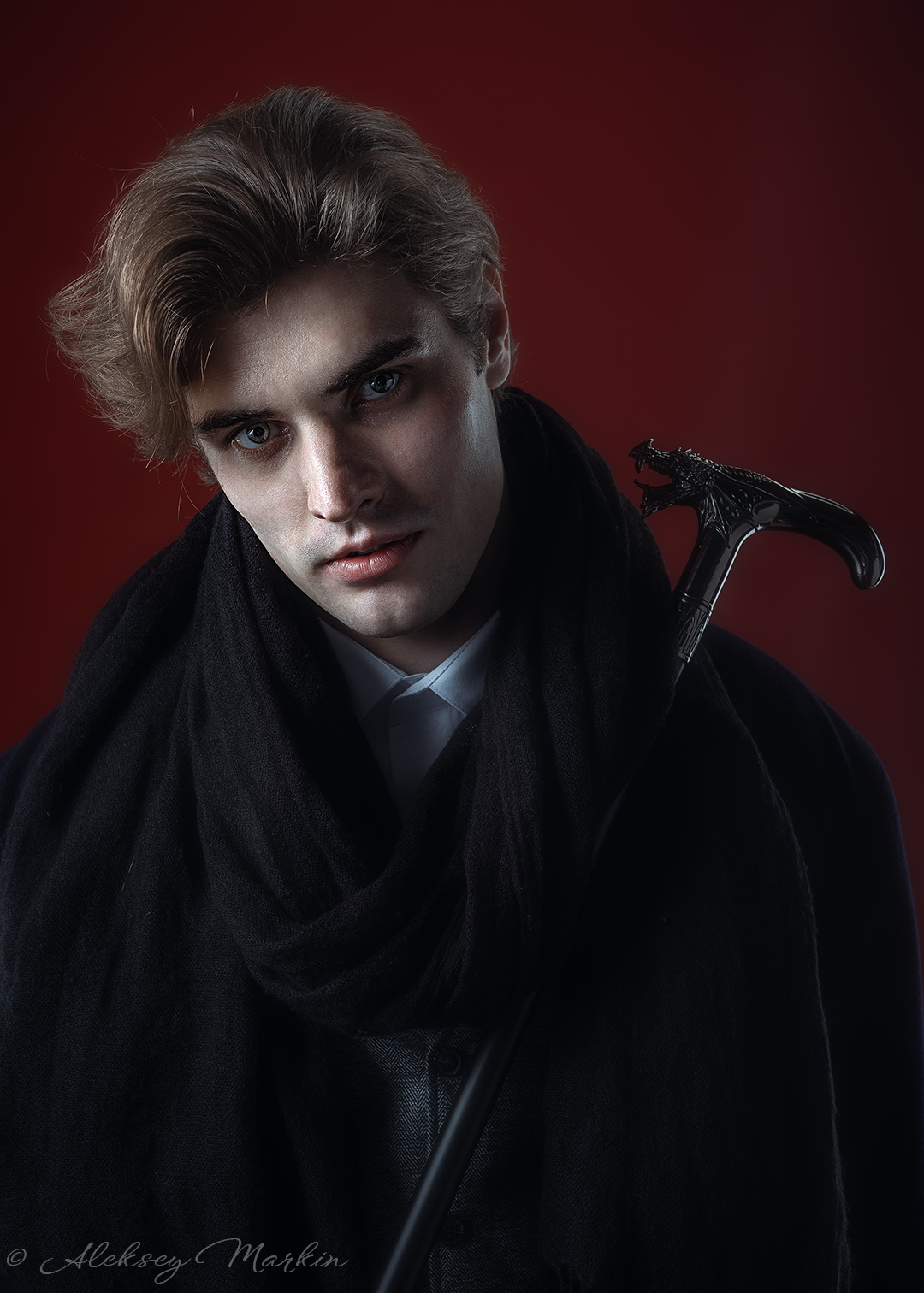 Алексей, классная работа! Атмосфера — на высоте, свет и тени играют как надо, взгляд — прямо в душу. Даже трость с драконом на рукояти добавляет характера. Очень сильный образ.