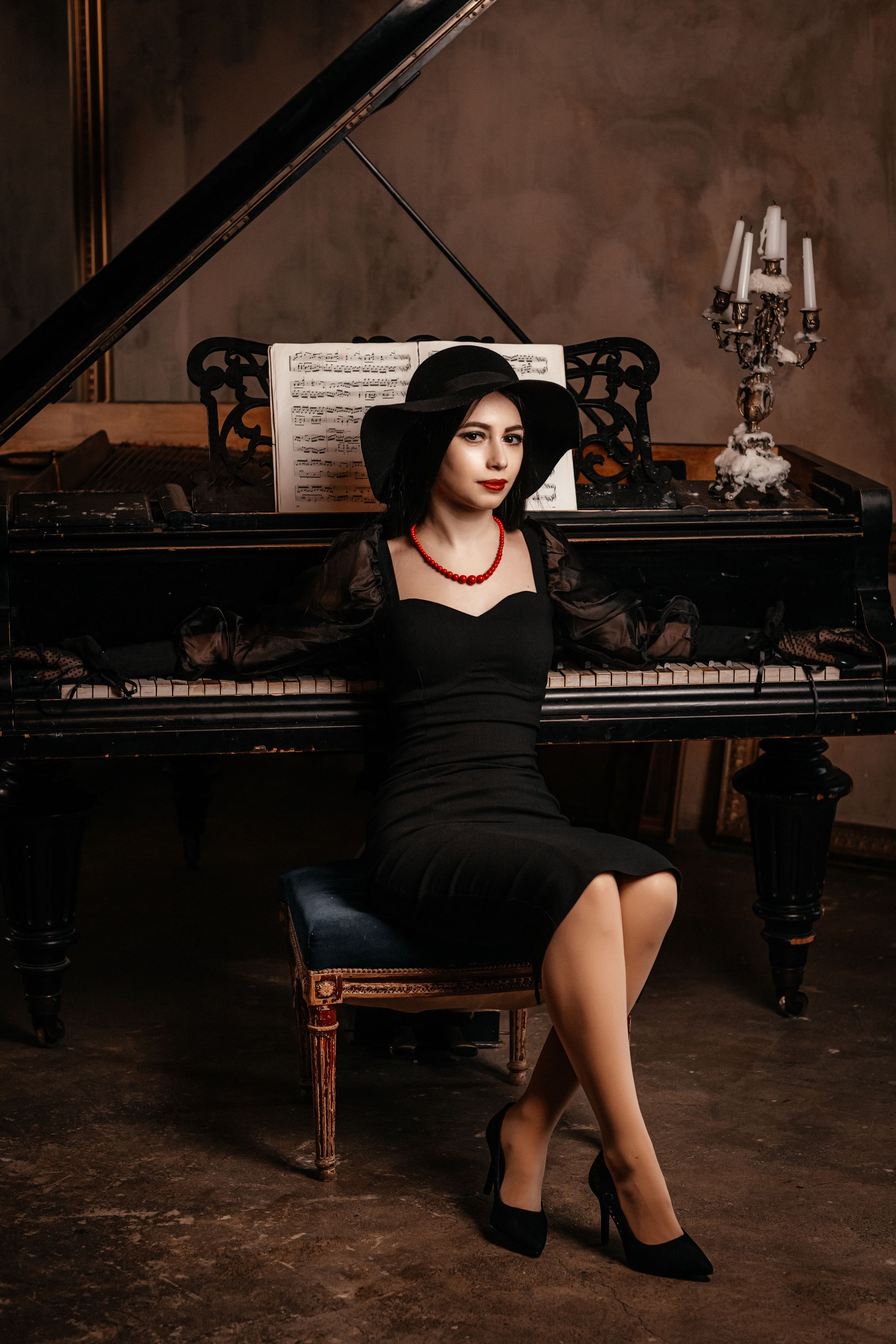 рояль, студия, девушка, шляпка, Алексей Плешков