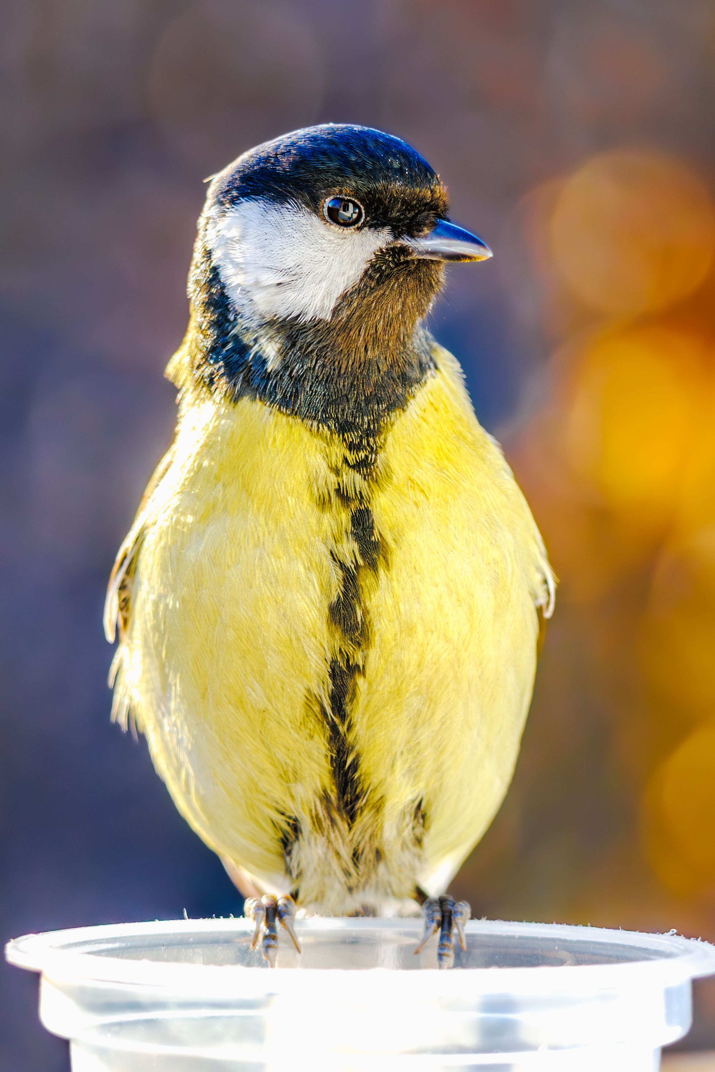 Синица — как маленький солнечный шарик на краю зимы. Глаза — чёрные бусинки, желтый брюшко — будто солнце в пуху.
